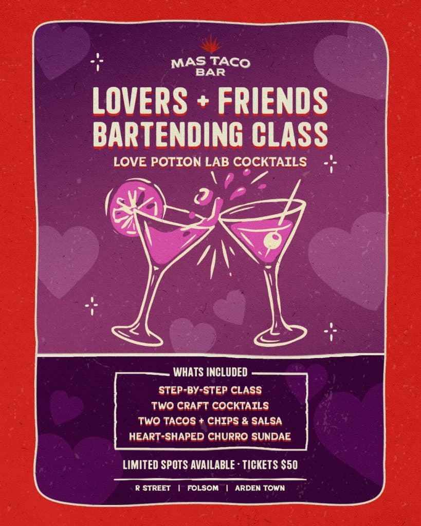 join our lovers & friends bartending class: love potion lab cocktails, tacos, sweet treats, and all the vibes. limited spots—don’t miss out.